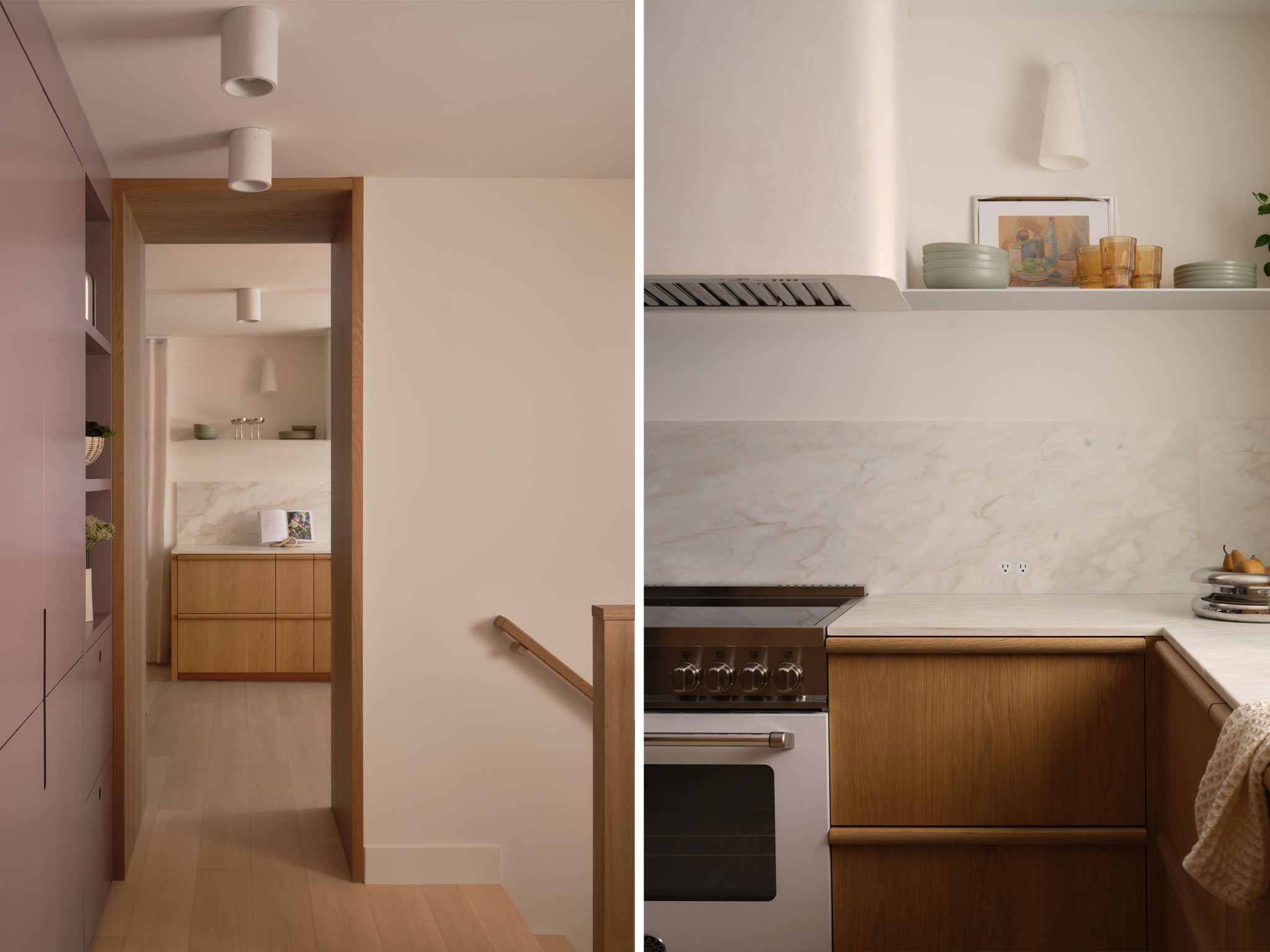 Perched on a quiet hillside with sweeping city views, this Noe Valley residence was transformed from a traditional San Francisco home into a calm, Scandinavian-inspired retreat. This project was our second collaboration with Adrian Dagli, Principal and Founder, Interior Wanderer Studio.The client envisioned a sanctuary that felt warm, minimal, and grounded in thoughtful craftsmanship. Through a full-home remodel, key areas including the kitchen, bathrooms, and a former in-law suite were reconfigured, with the latter becoming a serene primary retreat. Nearly every window and door was replaced with stain-grade profiles, while custom furnishings and millwork were carefully designed to balance function and artistry. Although the home is rooted in Scandinavian sensibility, it is the nuanced tonal layering and subtle moments of color that create an atmosphere that feels both quietly vibrant and deeply calm. Design: Adrian Dagli, Principal and Founder, Interior Wanderer Studio.